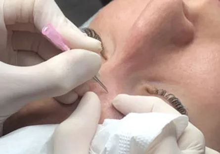 It is very important to maintain a sterile environment while working with the needle, I’m using sterile examining gloves and single use sterile needle. The cleared skin gets sterilised by VIO generated ozone.